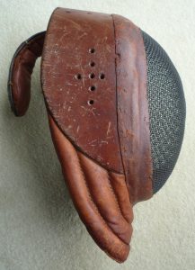 Early sabre and sword exercise masks were of the semi-helmet type with a leather-clad superstructure over the head [Fig. 11].