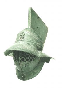 The head has always been vulnerable in combat and the British Museum has a remarkable mask from Roman times: a gladiator’s helmet with metal grill sections covering the eyes [Fig. 1].